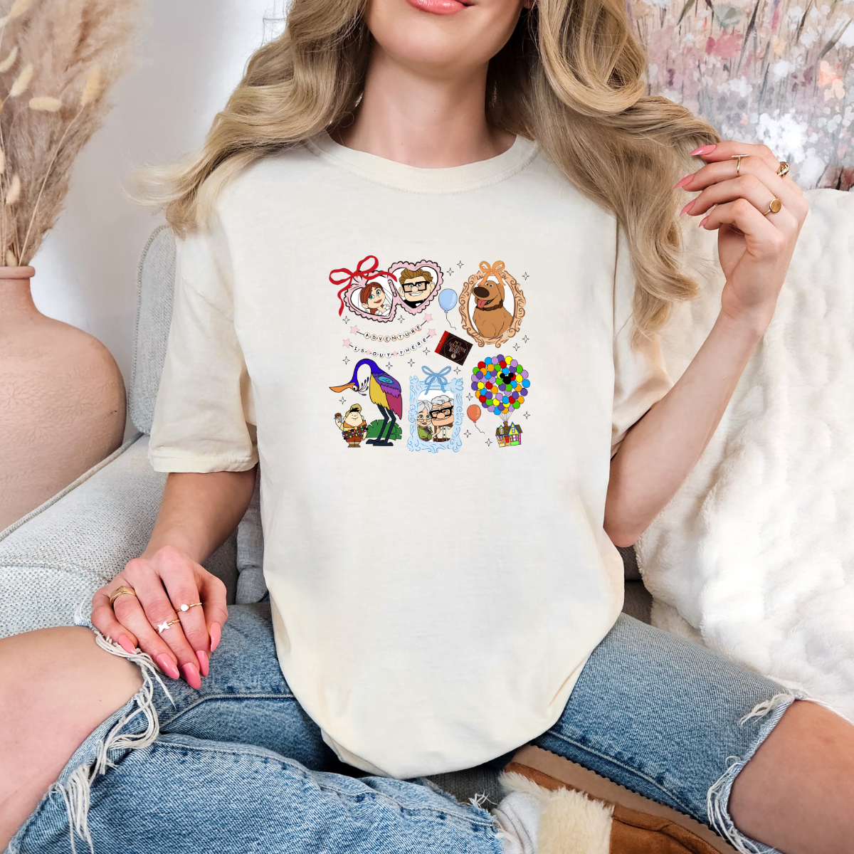 My shirts are created to order :) This listing for the a comfort colors t-shirt with the Adventure is Out There Coquette design.