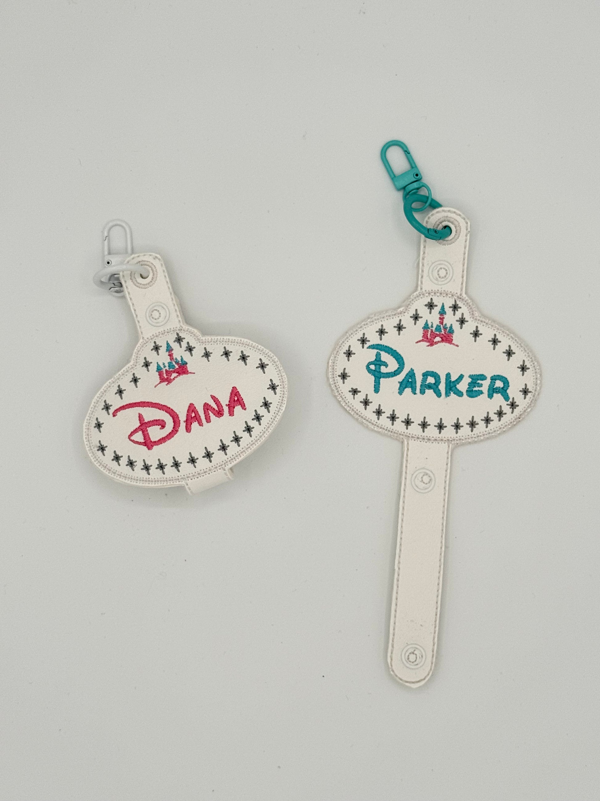 Castle with Name Ear Holder - Personalized Embroidered Keychain/Bag Tag