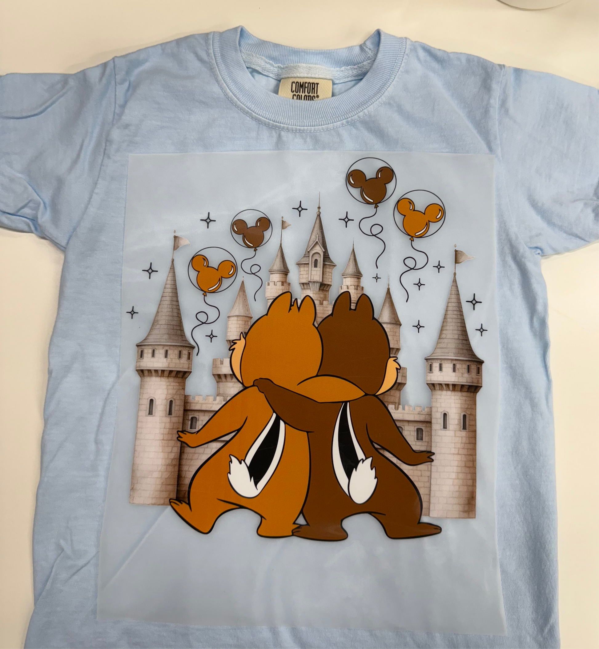 My shirts are created to order :) This listing for the a comfort colors t-shirt with the Chipmunks Castle design.