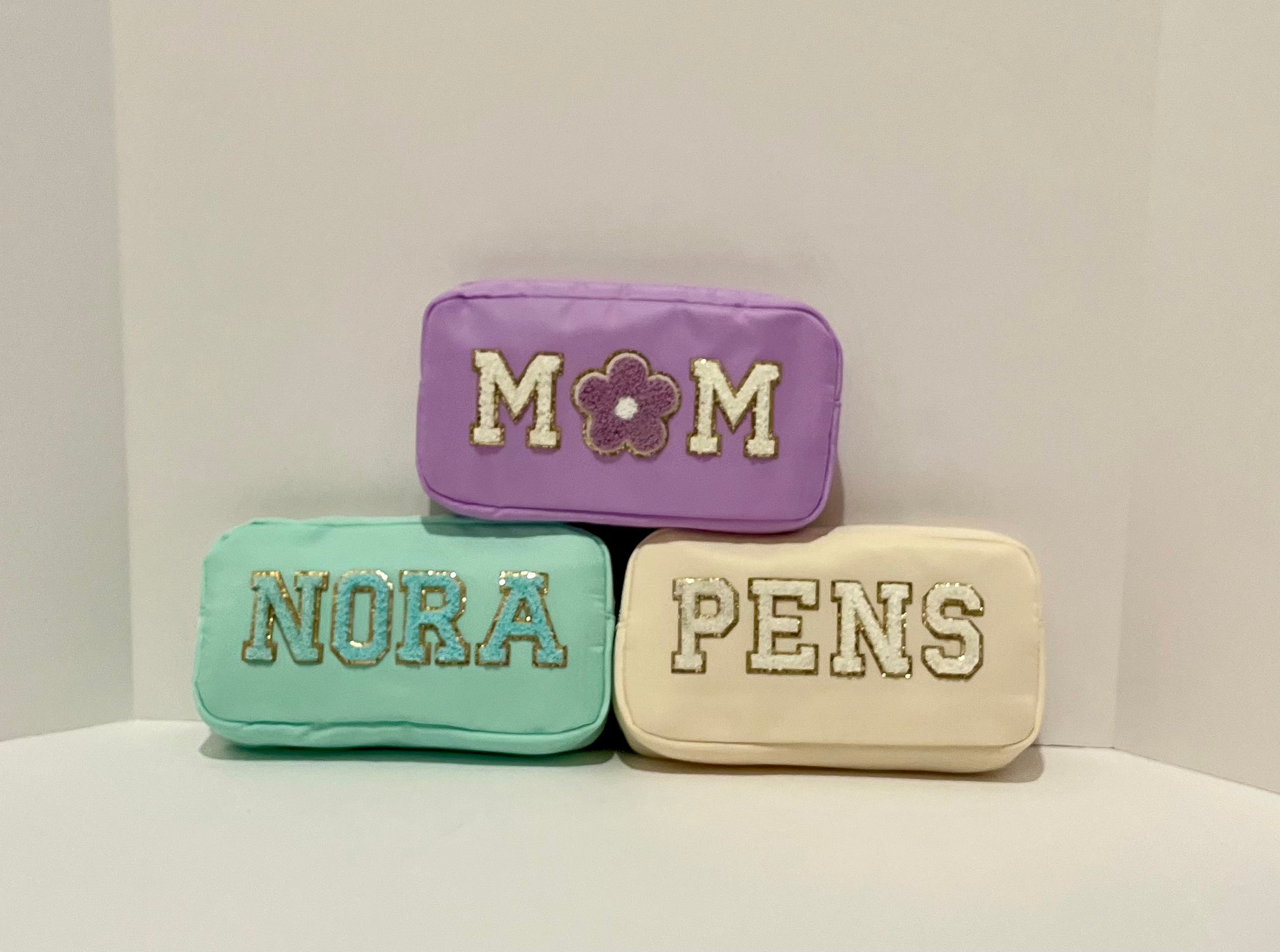 Nylon Cosmetic Bags, Toiletry Bags, Summer Travel Bags, Nylon Pouch Bags Chenille Patches