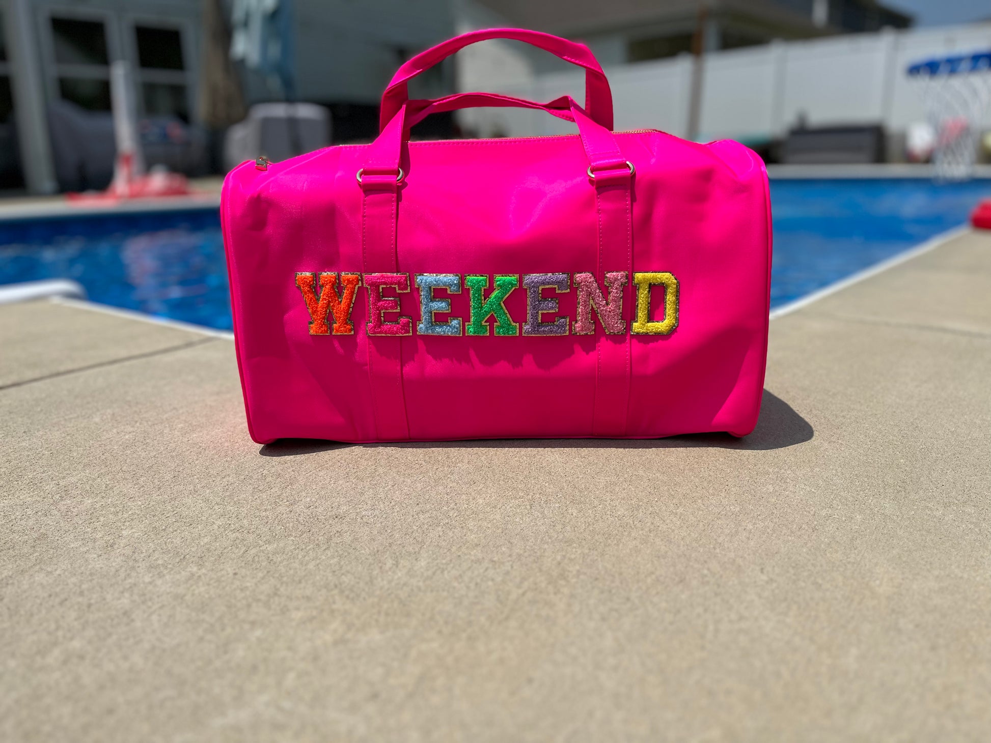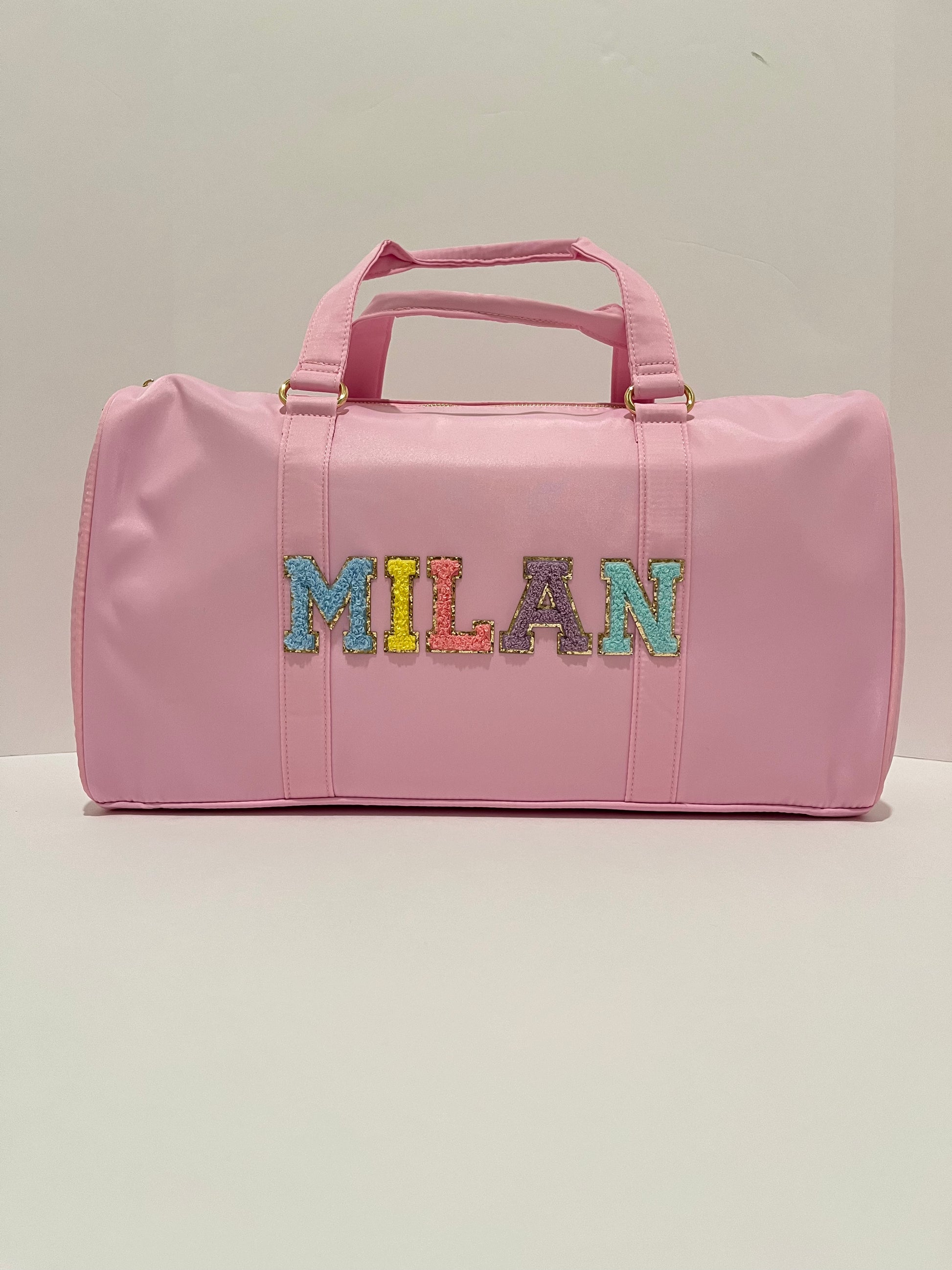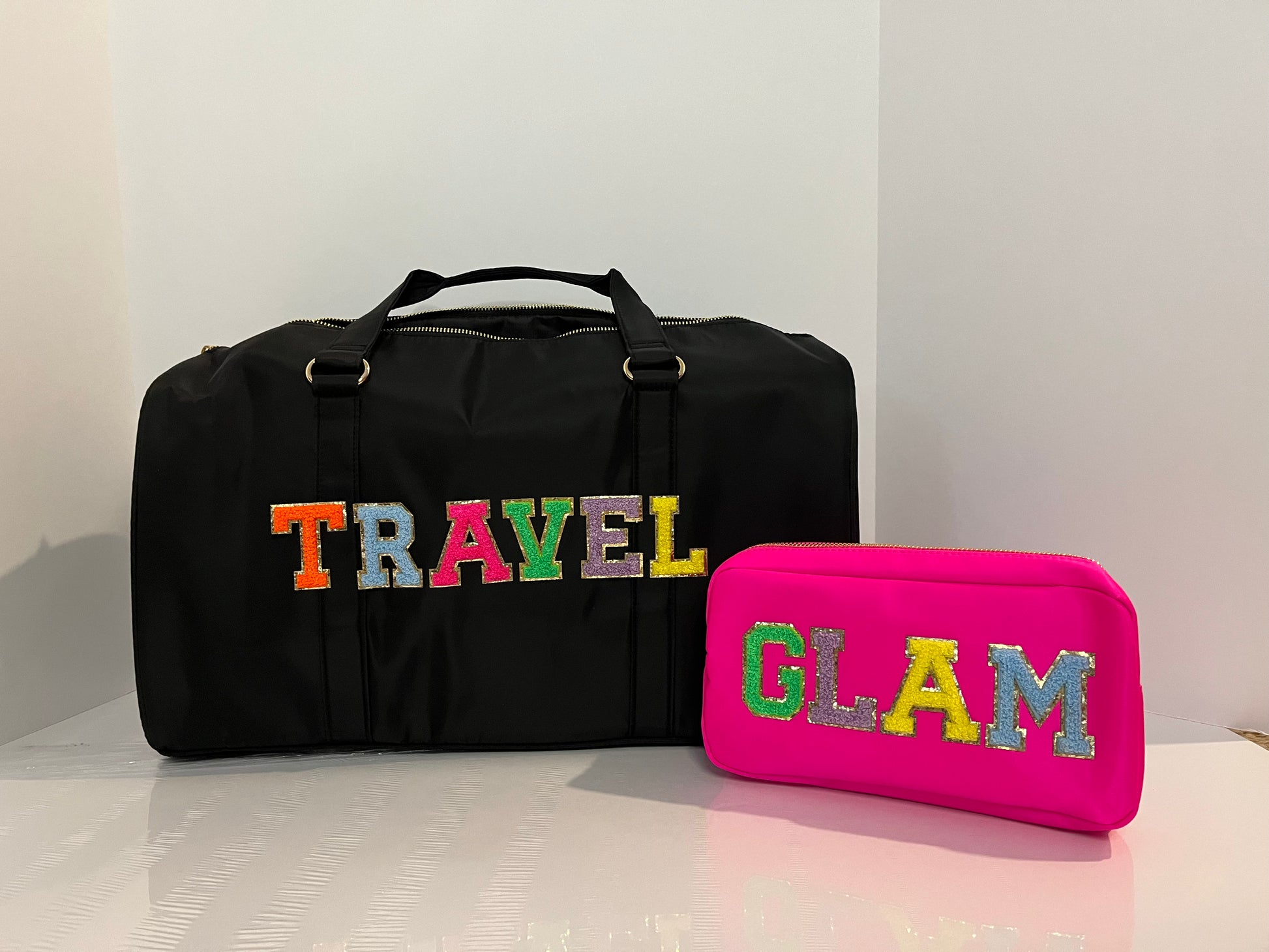 Chenille letter patches (2 inch) and are available white, light pink, hot pink, light blue, mint, purple, yellow, black, neon orange, red, green.