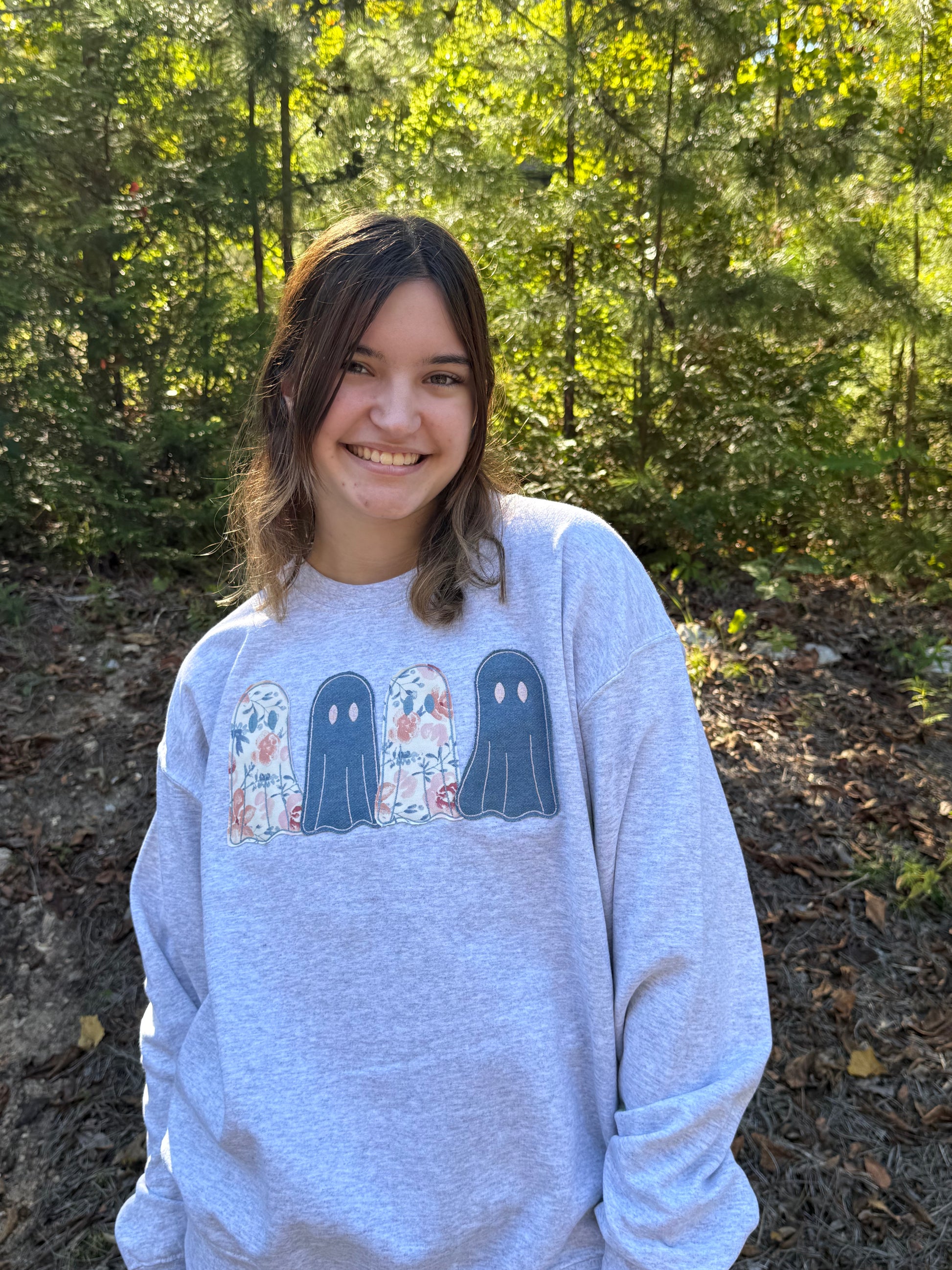 Four Friendly Ghosts Applique Embroidered Sweatshirt