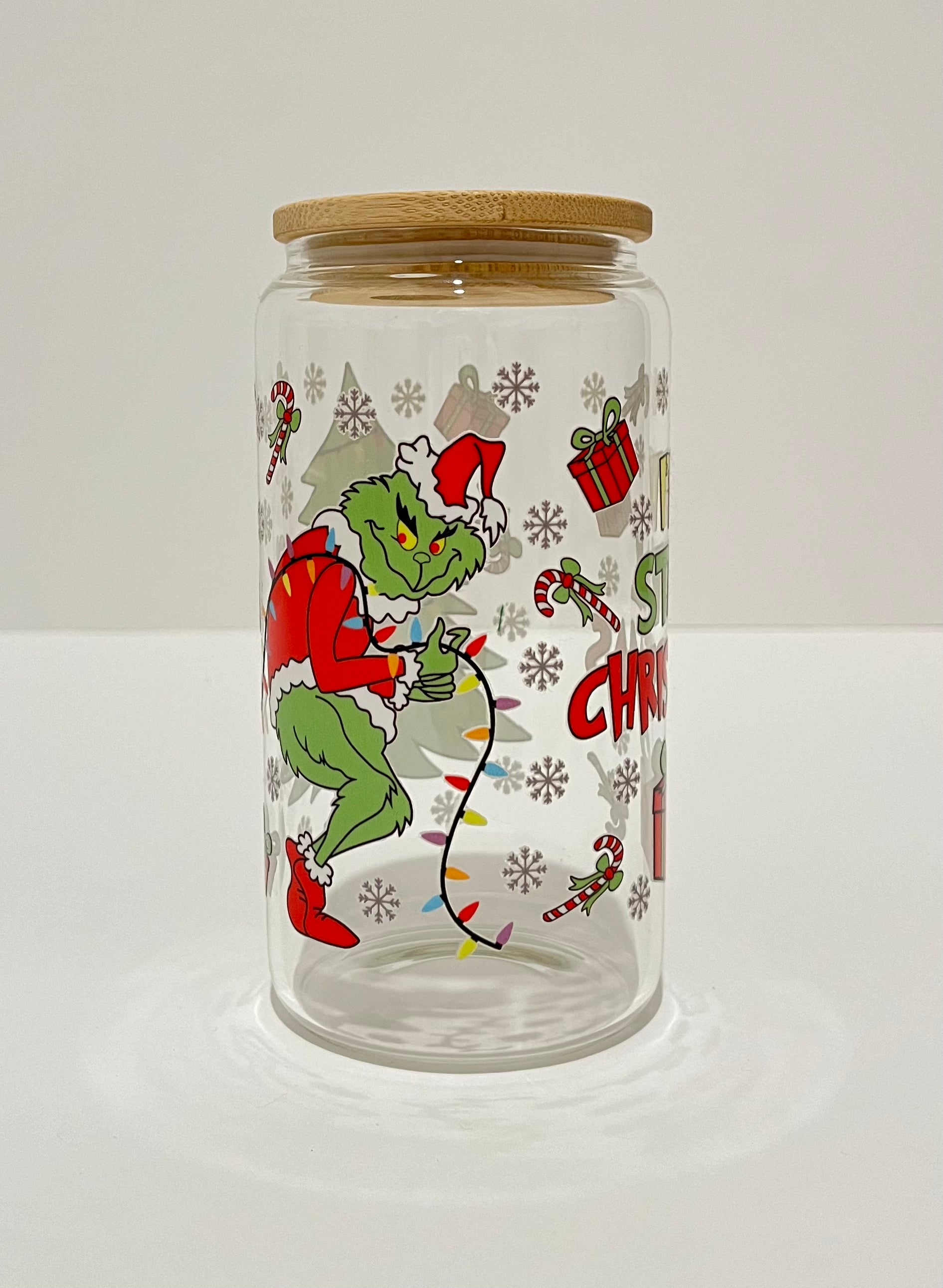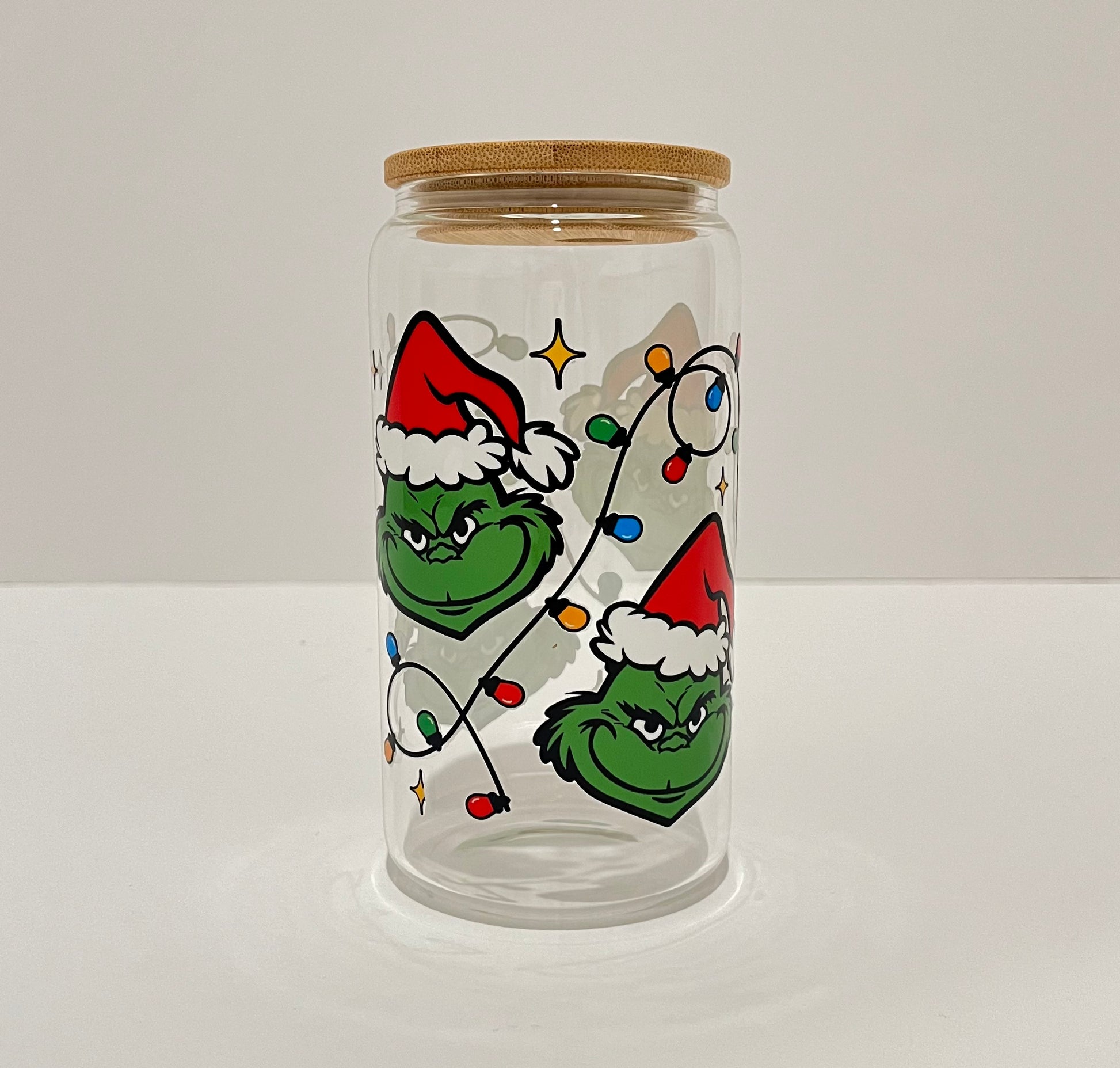 This listing is for 1 Glass Cup - You choose your design out of the 4 Green Guy Options