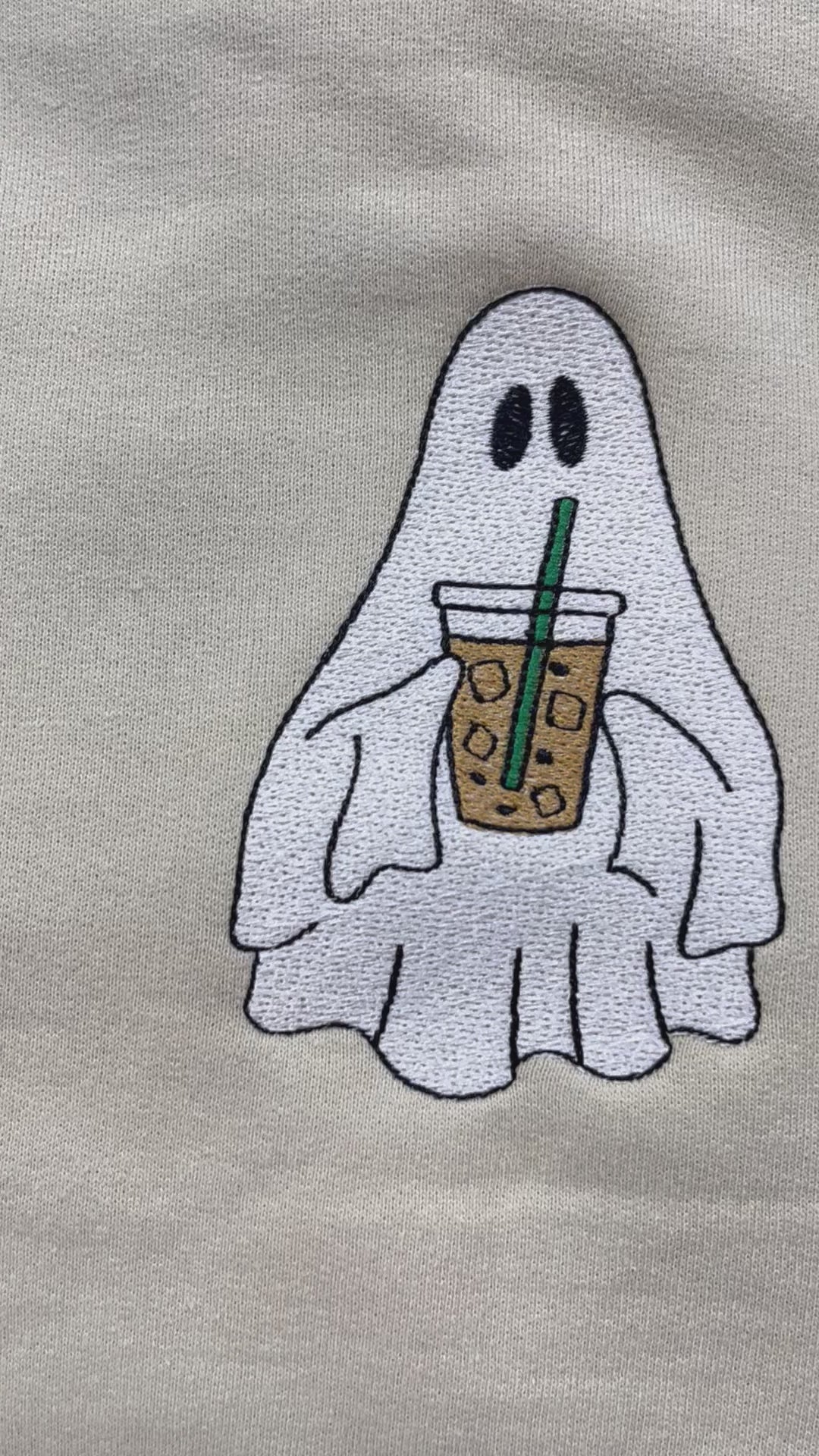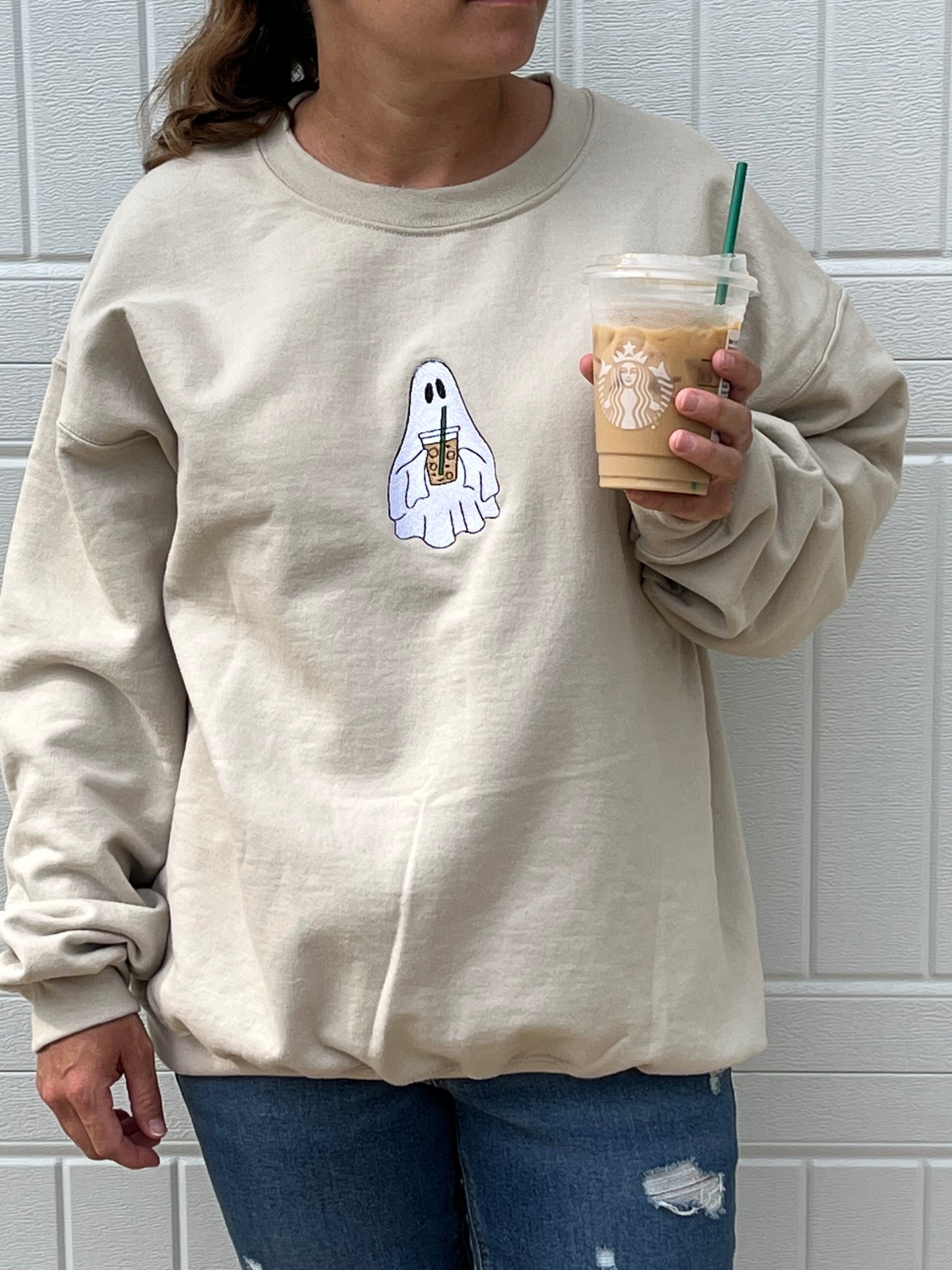 Iced Coffee Ghost Embroidered Halloween Sweatshirt