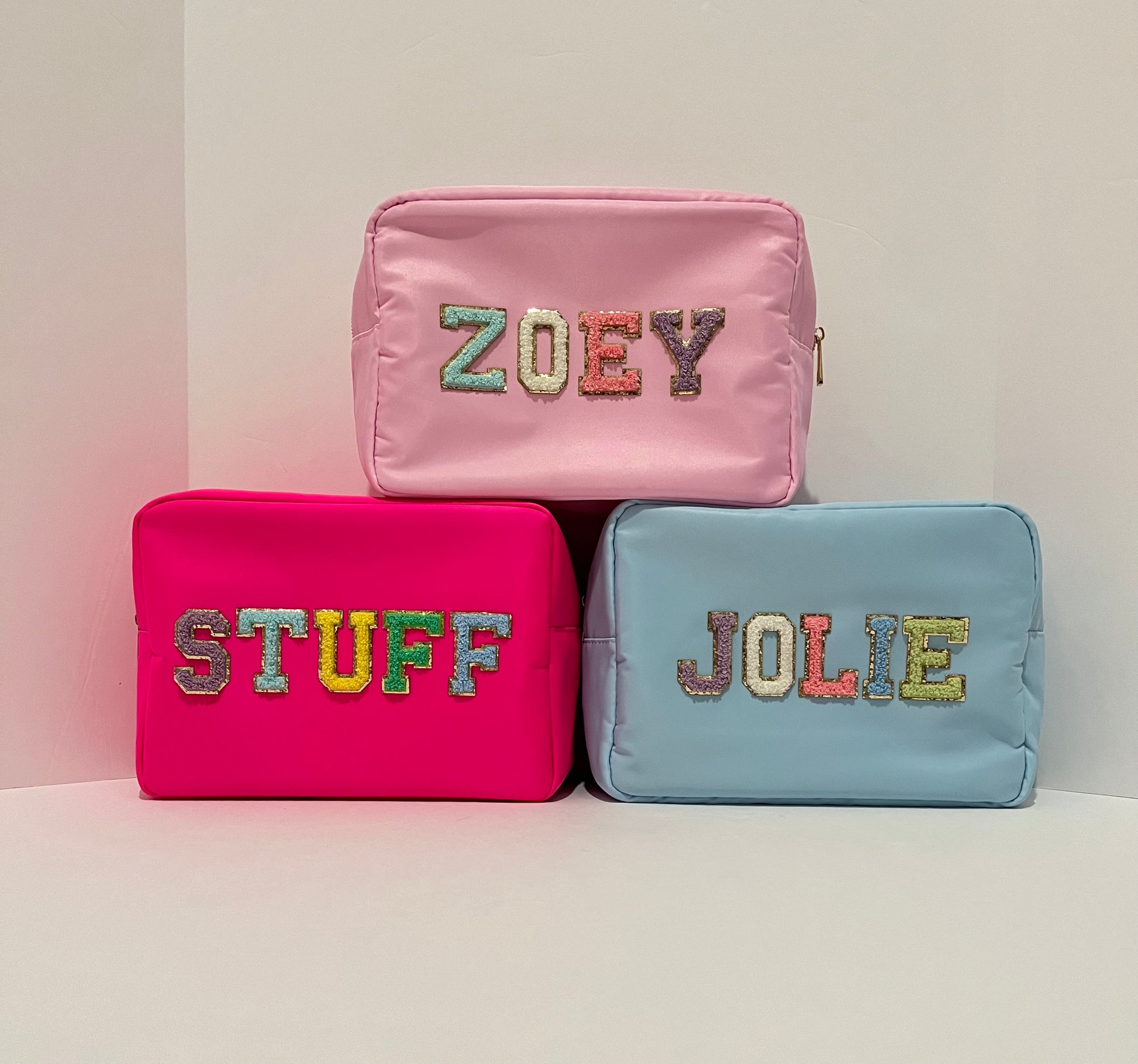 Nylon Cosmetic Bags, Toiletry Bags, Summer Travel Bags, Nylon Pouch Bags Chenille Patches