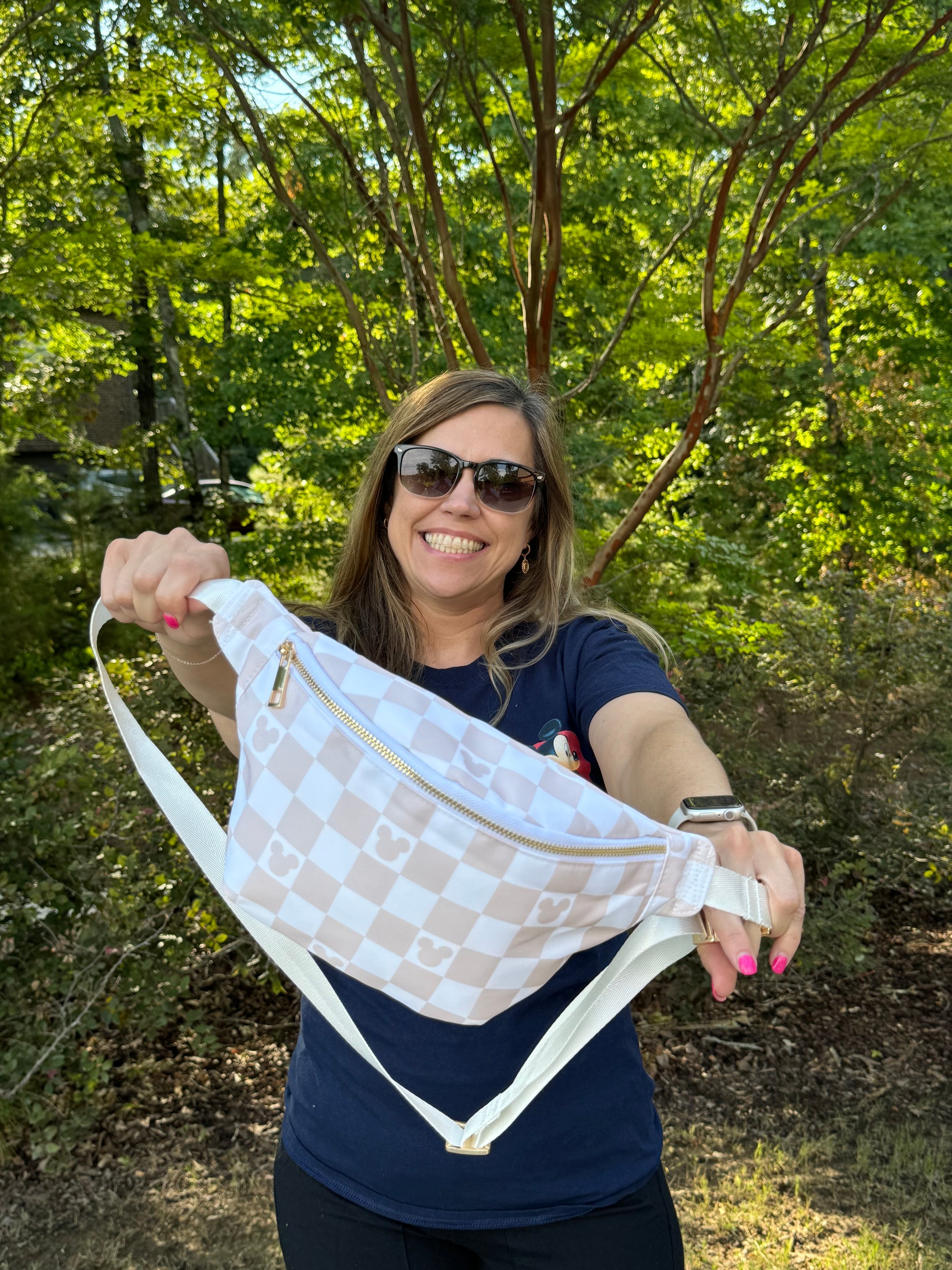 Available fanny pack colors are Black/White, Multi, Tan/White or Magical Characters