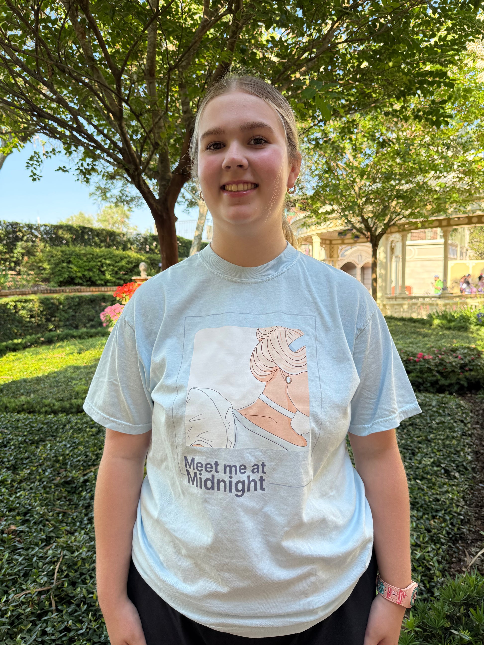 My shirts are created to order :) This listing for the a comfort colors t-shirt with the Meet Me at Midnight design.
