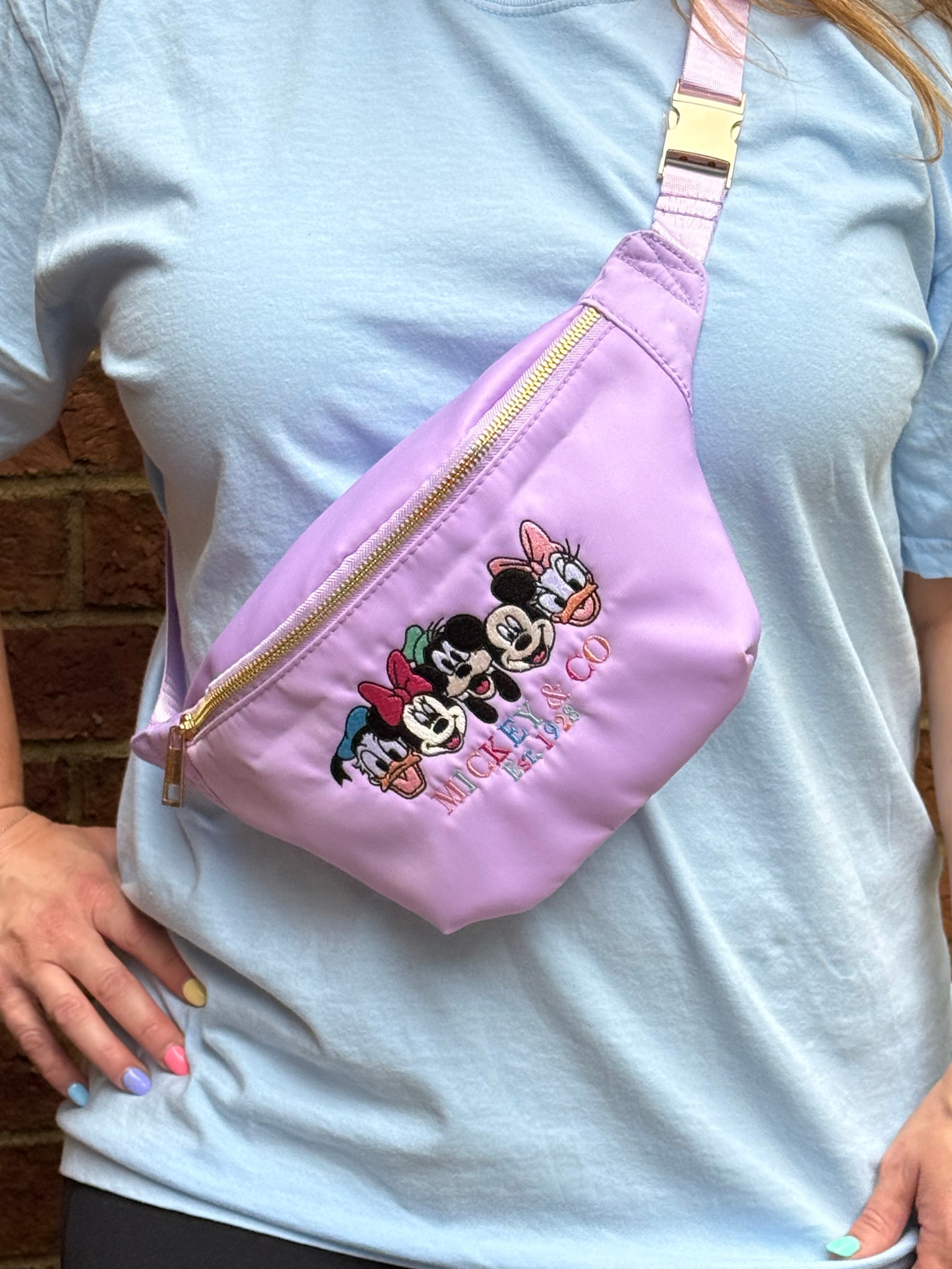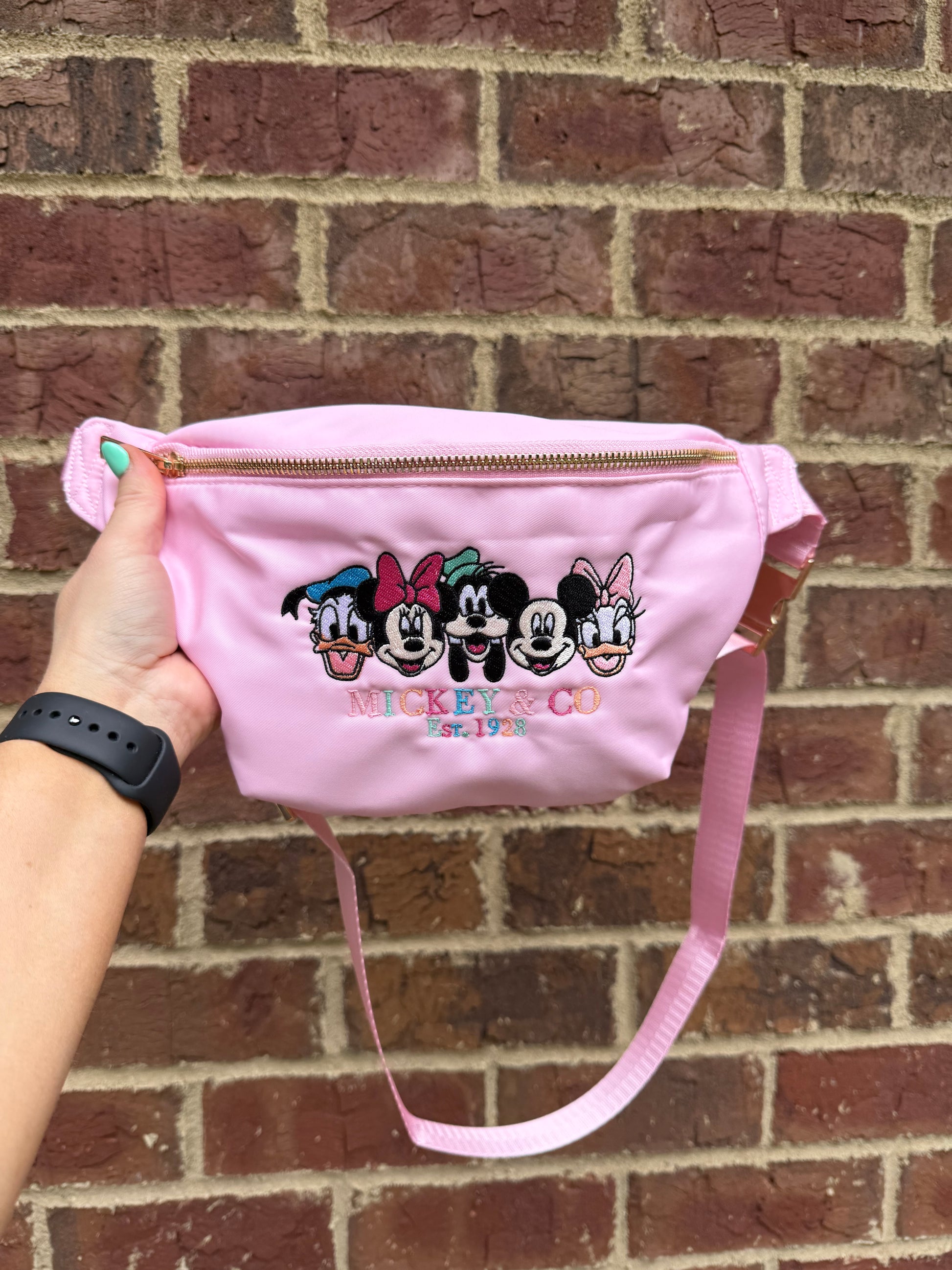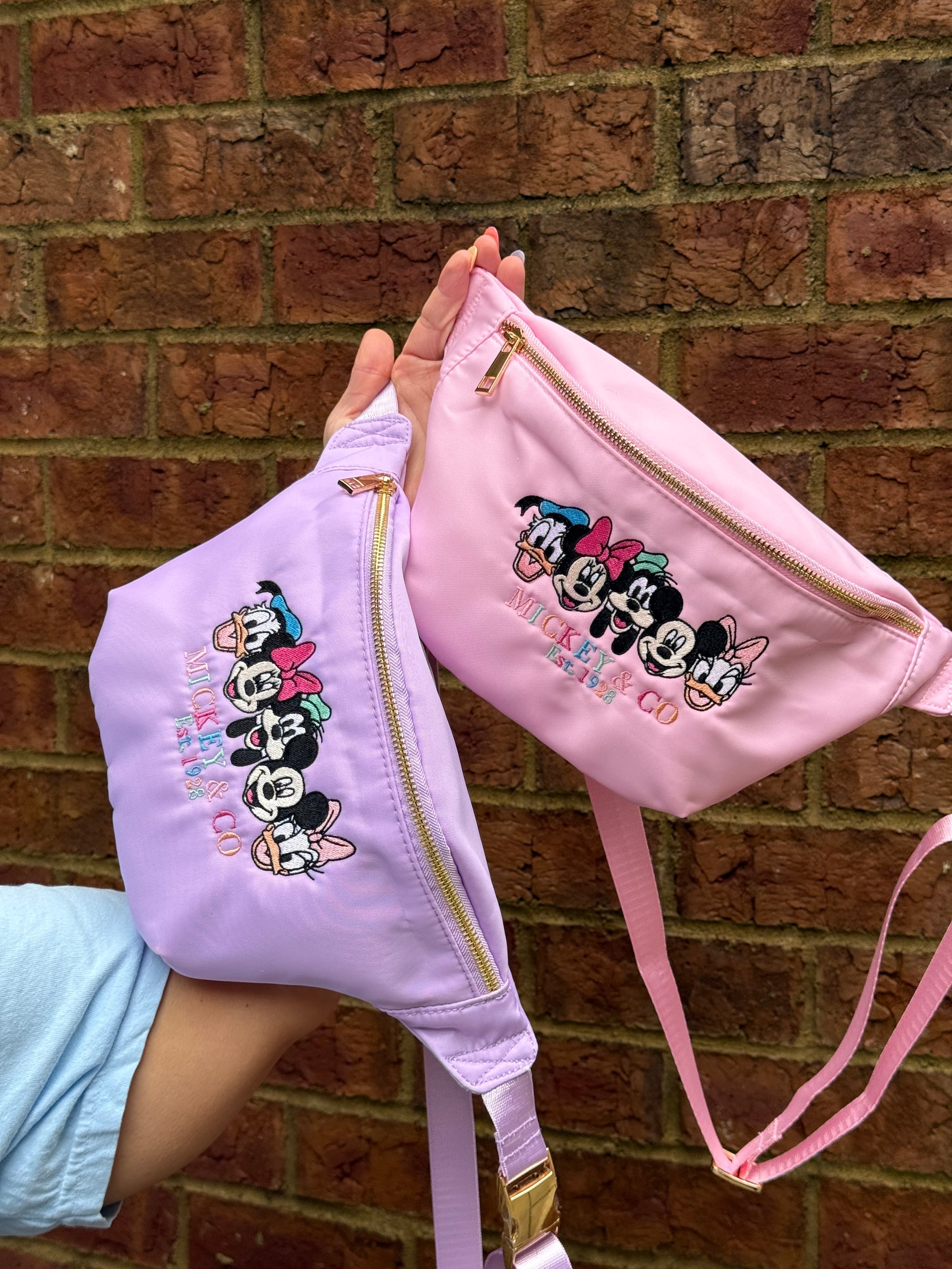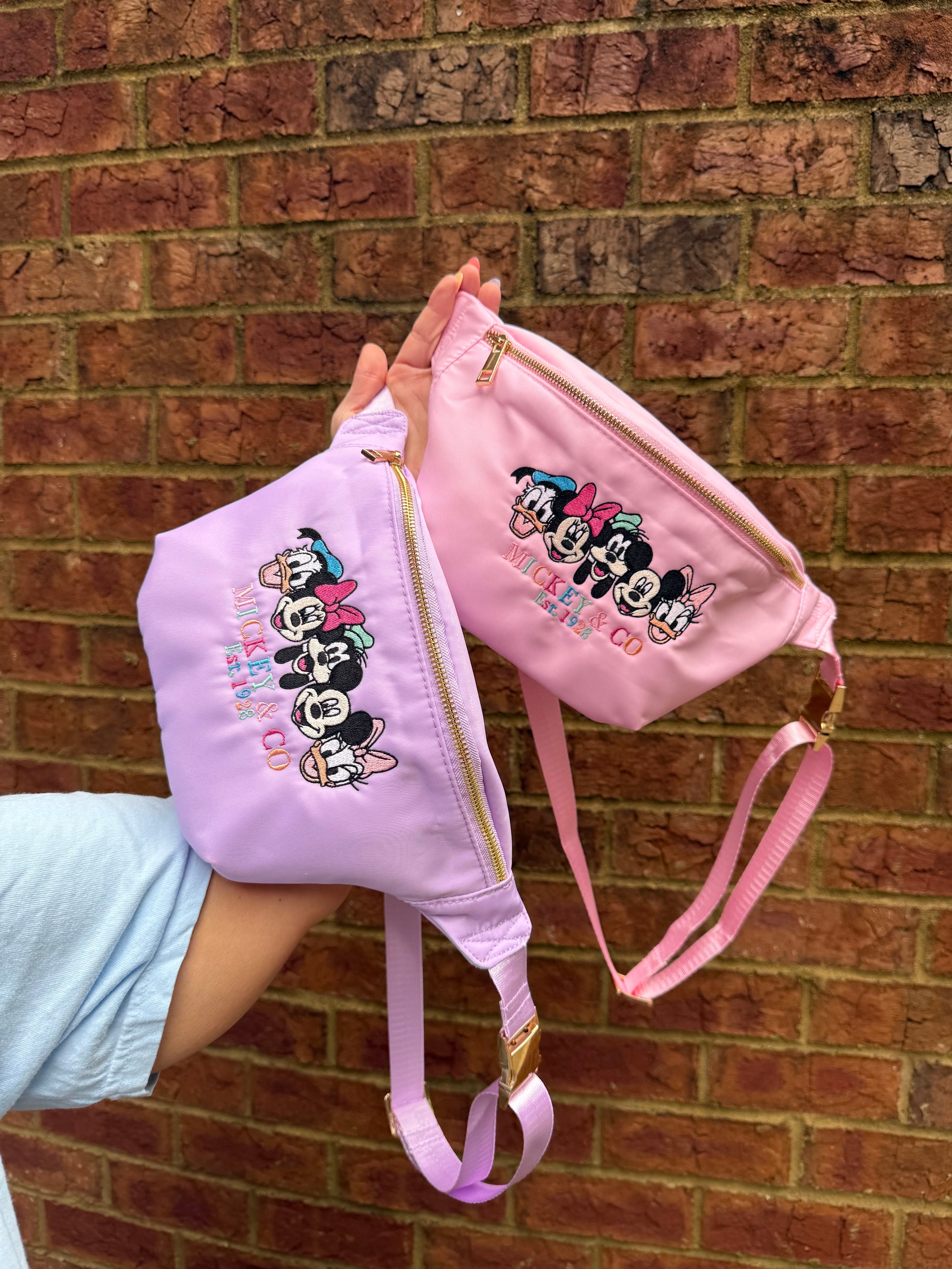 Available fanny pack colors are Black/White, Multi, Tan/White or Magical Characters