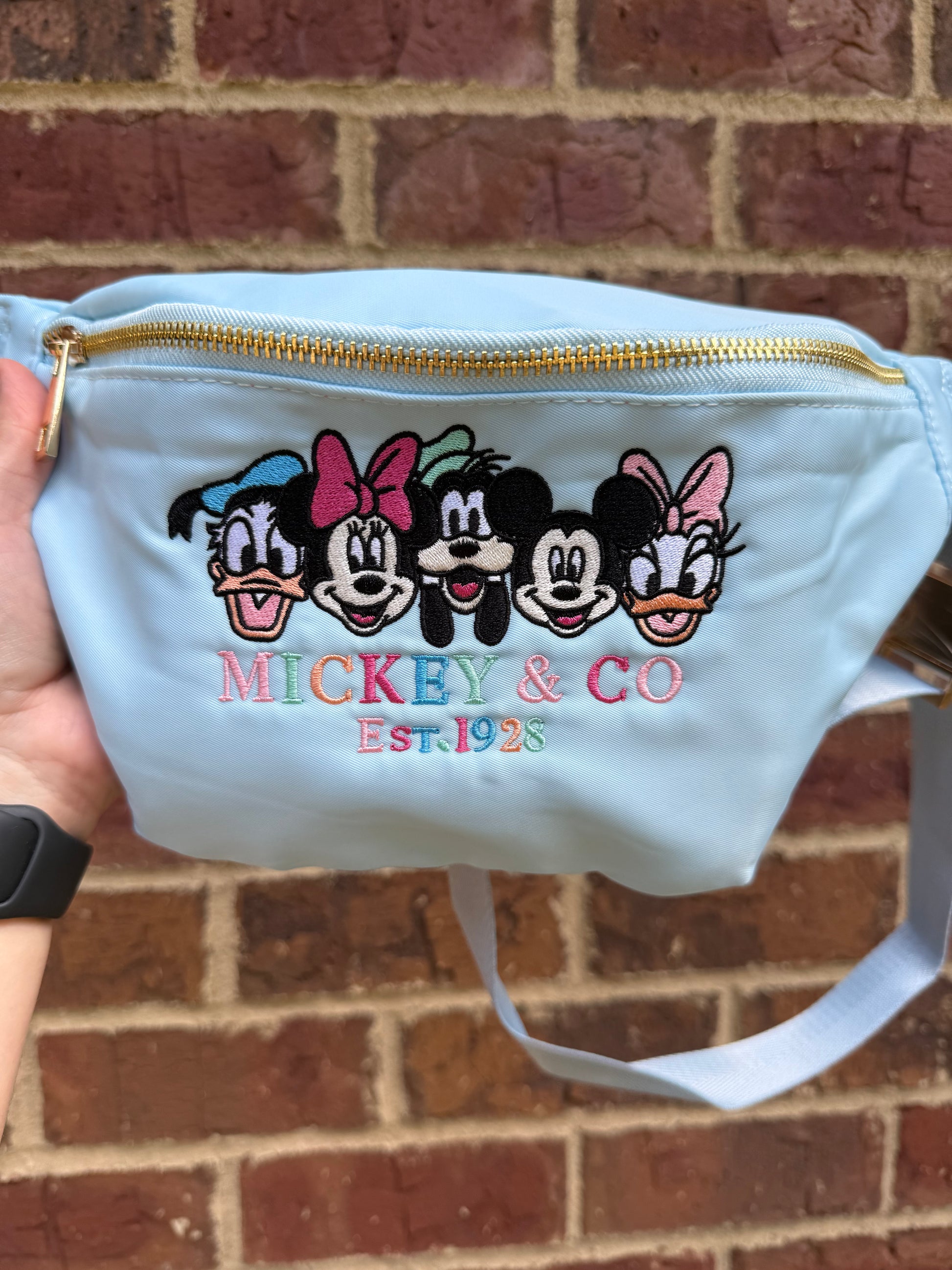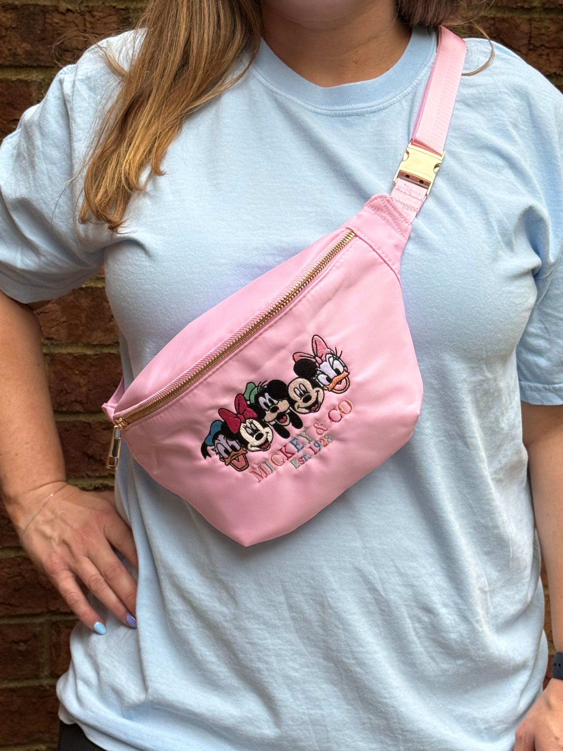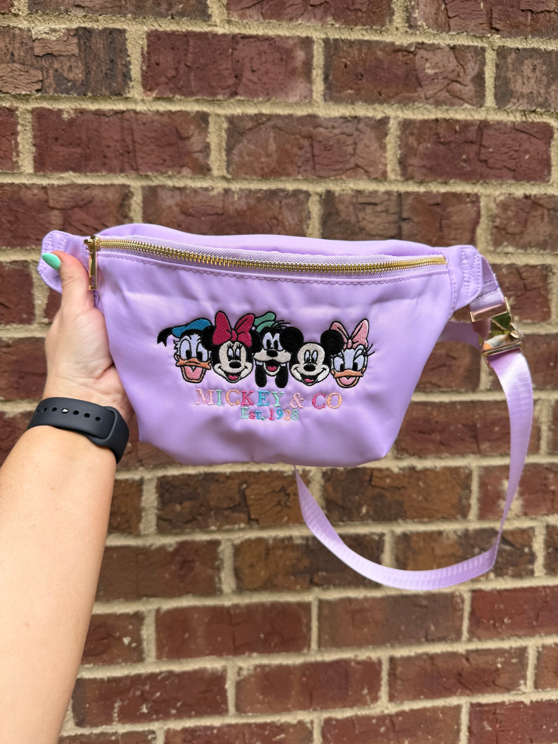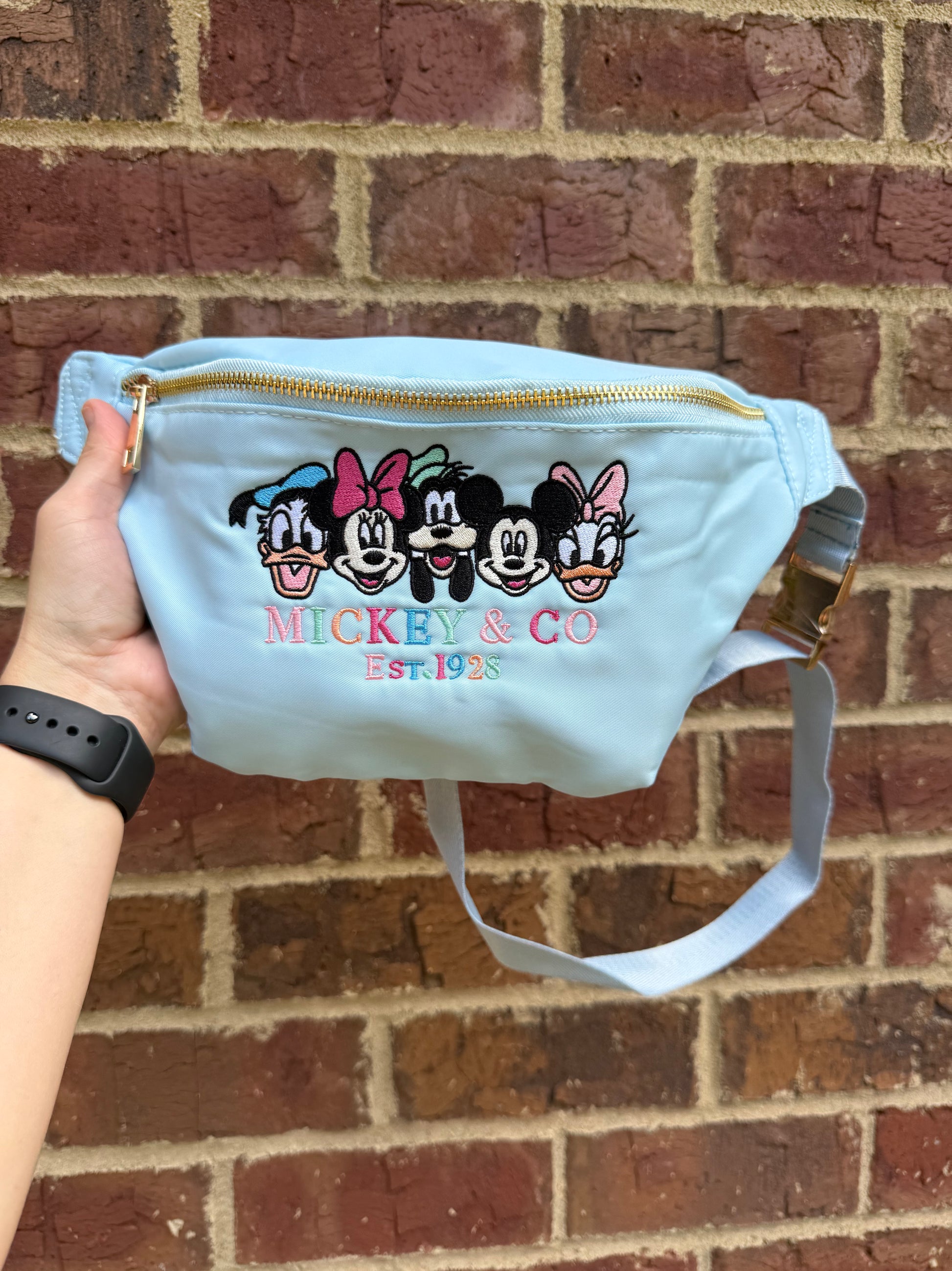 Available fanny pack colors are Black/White, Multi, Tan/White or Magical Characters