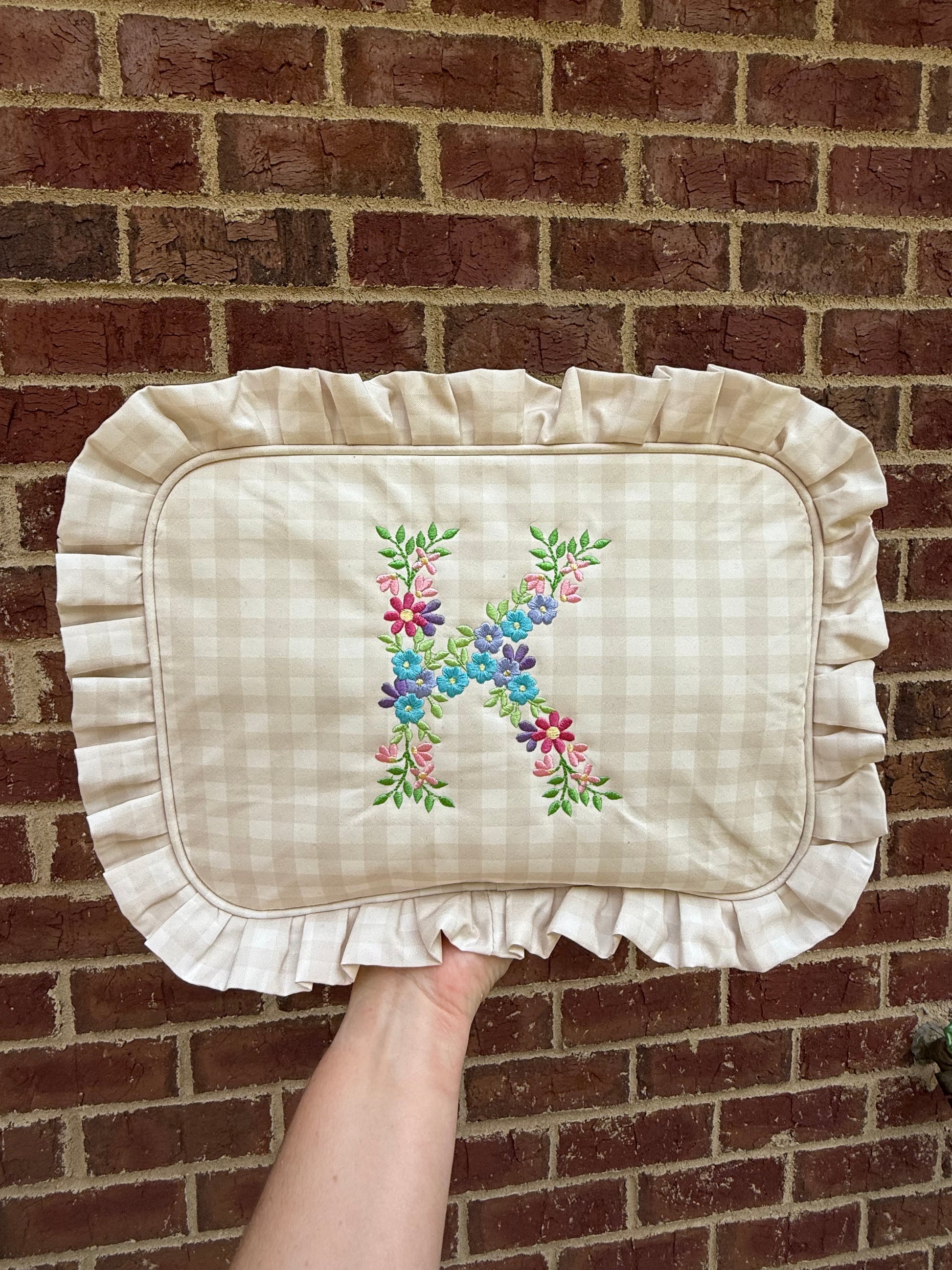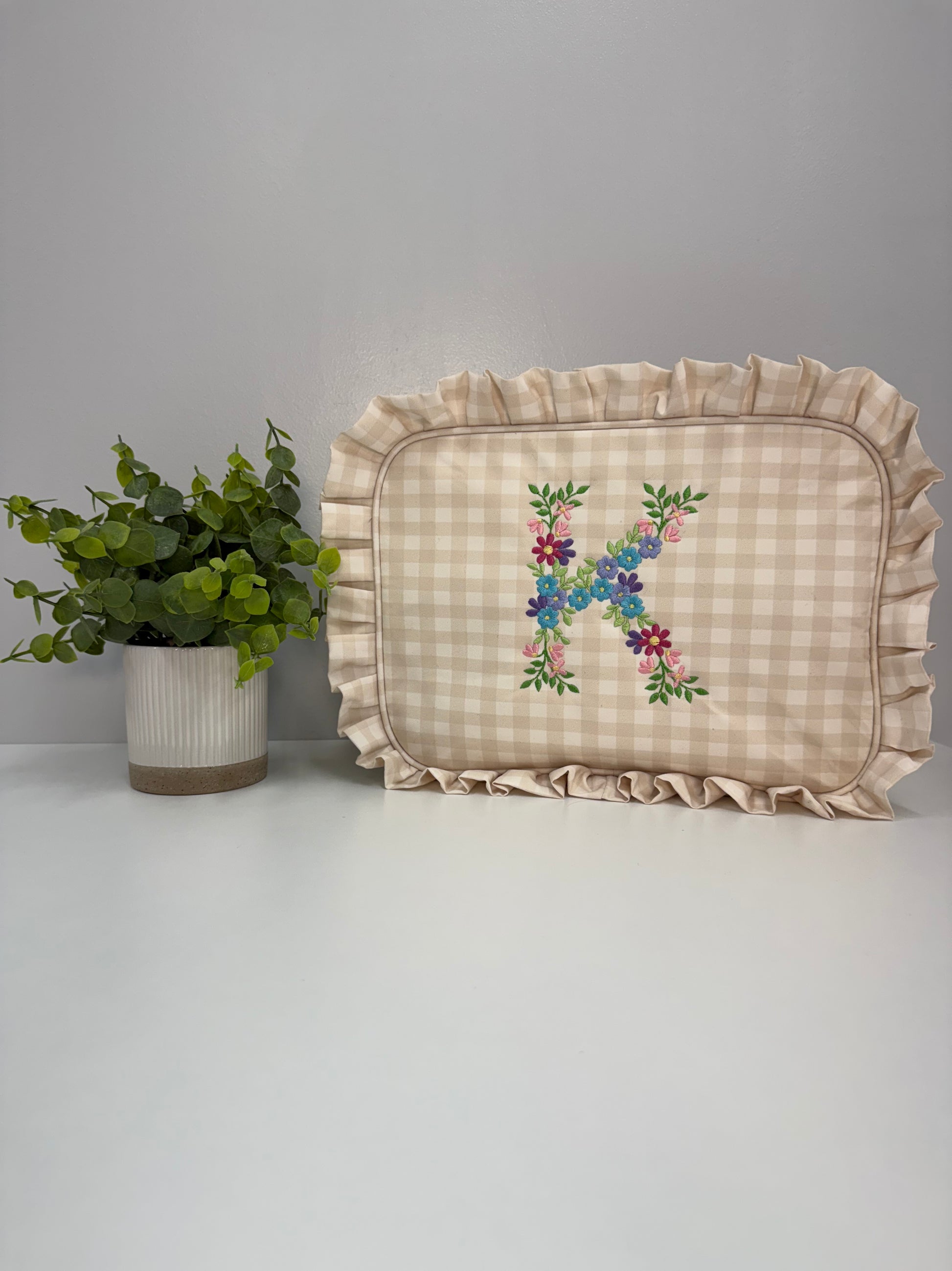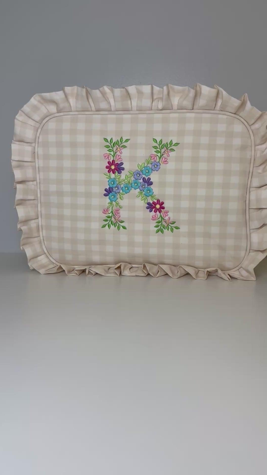 Personalized Embroidered Ruffle Gingham Cosmetic Bag XL