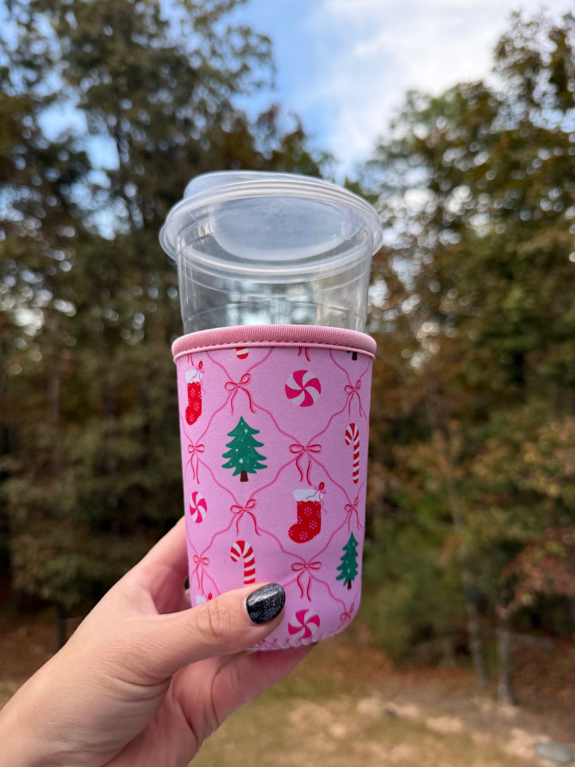 Pink Christmas Coffee Sleeve - Iced Drink Sleeve