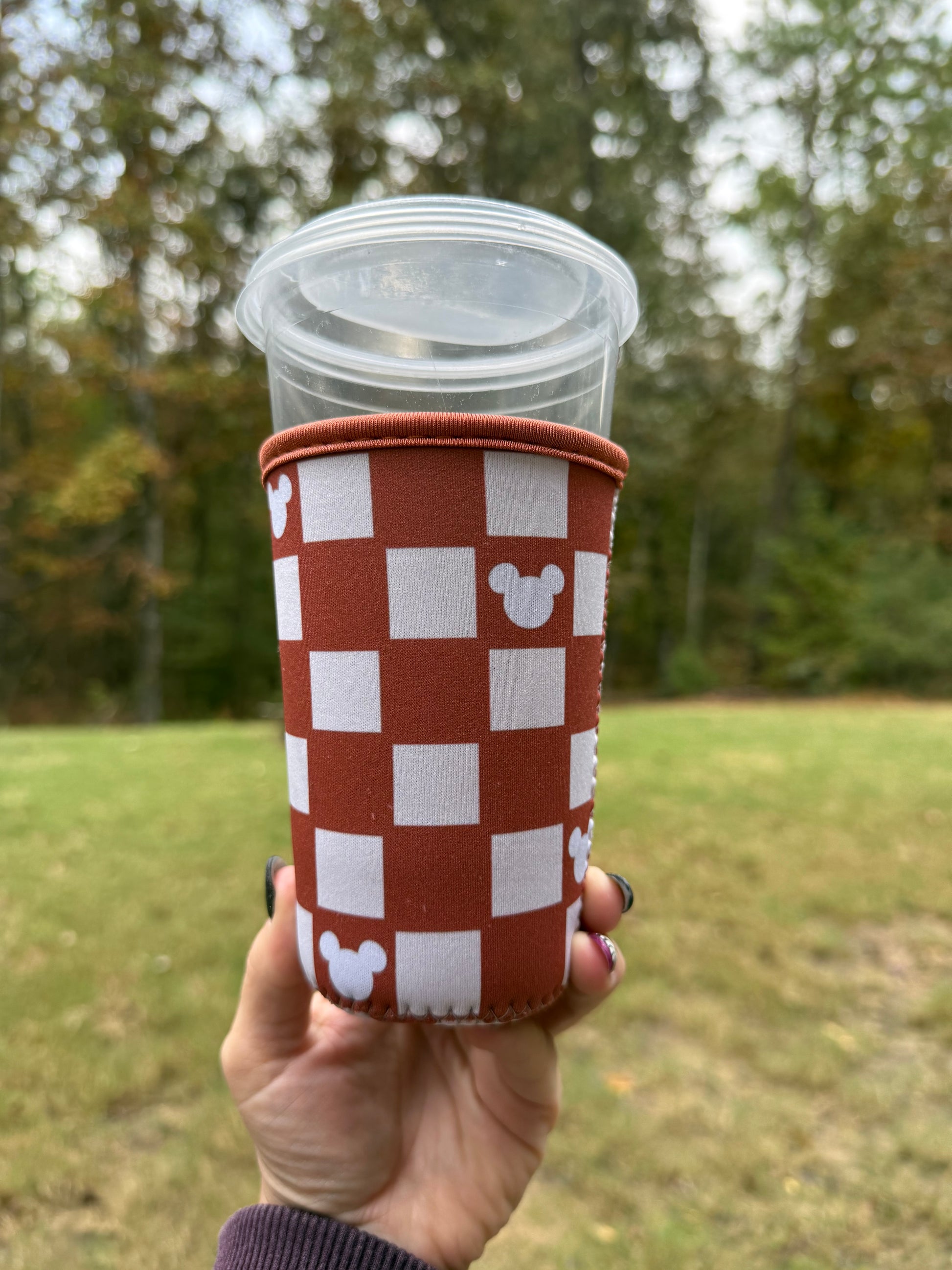 Rust Checkered Mouse Coffee Sleeve - Iced Drink Sleeve