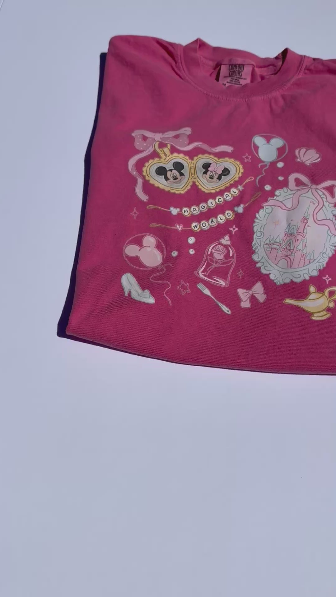 My shirts are created to order :) This listing for the a comfort colors t-shirt with the magical world coquette design. Cup is available on another listing.
