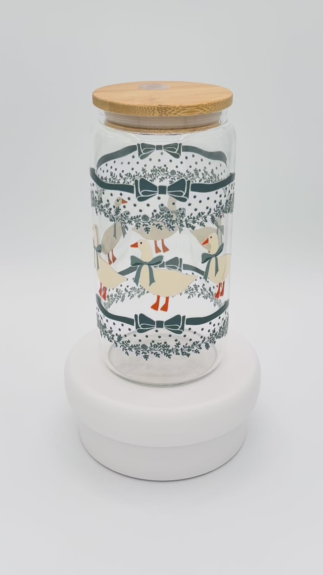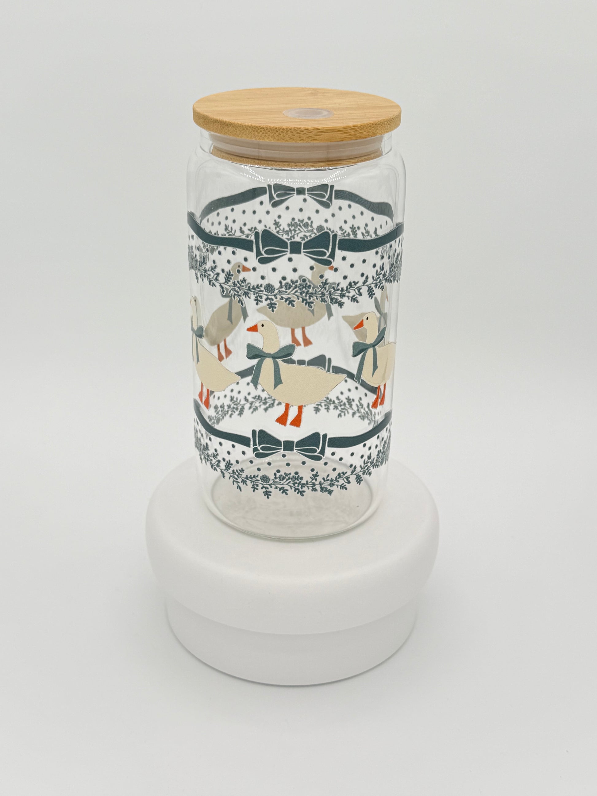 Will include ONE 16-ounce glass can cup (3-inch diameter x 5.25-inch height) with bamboo lid and plastic straw. The bamboo lid for the glass includes a silicone sleeve, which seals the glasses and prevents leaks or spills. The lids make it easy to take your drink on the go :)